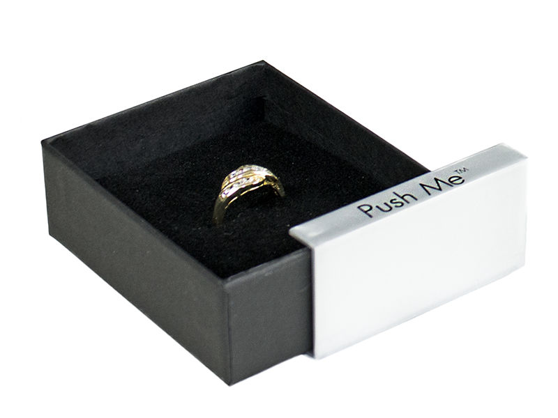 Push Me æsken er en kombination af materialerne karton og plastik, hvilket giver en utraditionel emballage.
